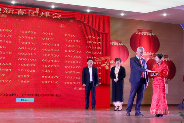 為了感謝廣大員工過去一年對企業的付出,團拜會還為大家準備了豐厚的獎品,共有1060名員工獲獎,獲獎率高達30%以上。