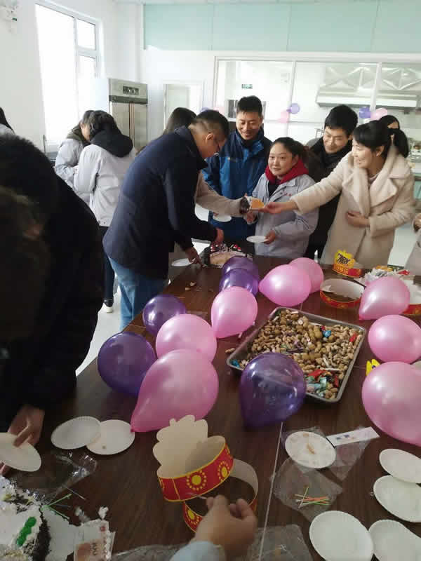 滿滿的關懷 壽星們的禮物 前來送祝福的同事們,在新建的員工餐廳里為過同事慶祝生日 蛋糕分享中,幸福和快樂也在分享著